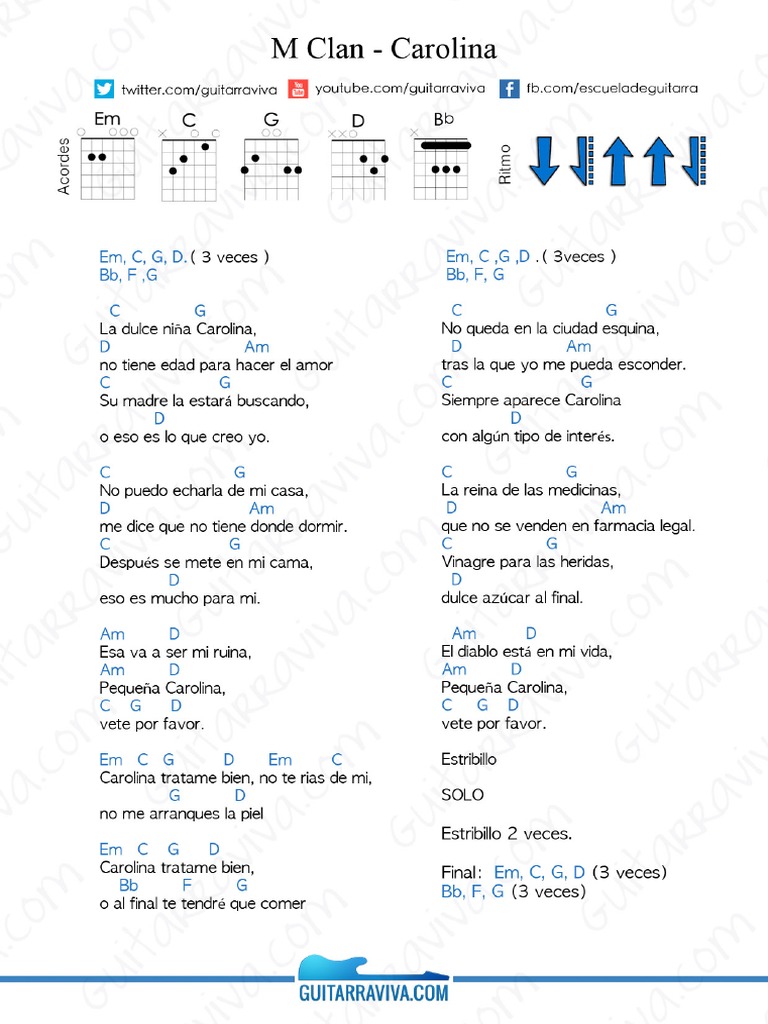 Carolina Acordes Guitarra - ¡imprime la hoja y practica en cualquier sitio!