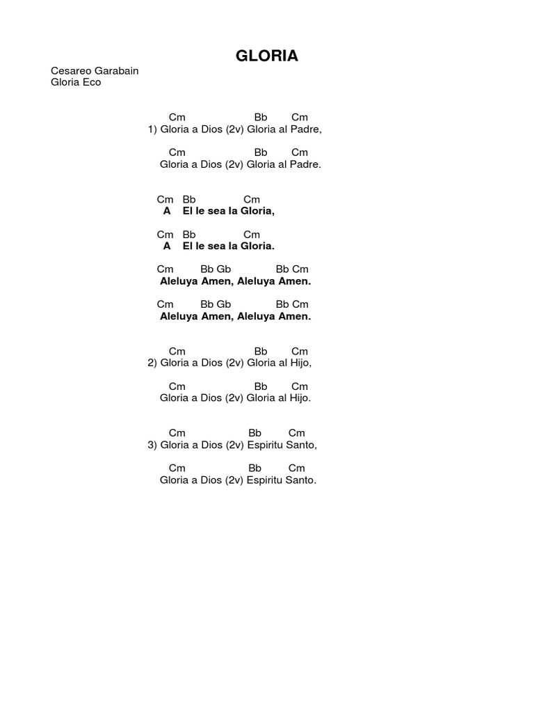La Gloria De Dios Acordes : Chords for gloria a dios, gloria a dios, gloria al padre.